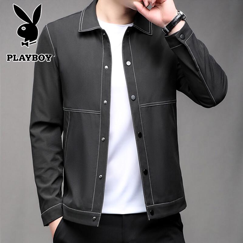 PLAYBOY Men's Spring Autumn Loose Fit Collared Anti-Wrinkle Jacket