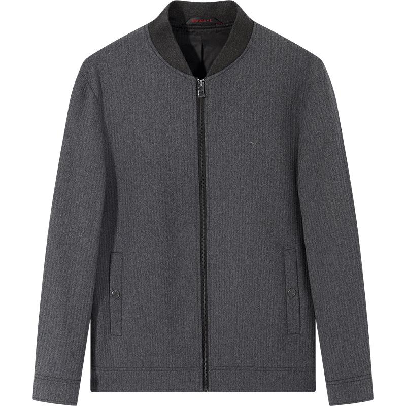 Qipai Herren Woll-Baseballjacke mit Streifenstruktur
