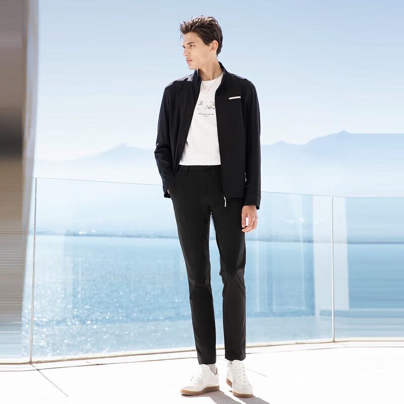 VICUTU Men's Black Stand Collar Zipper Jacket