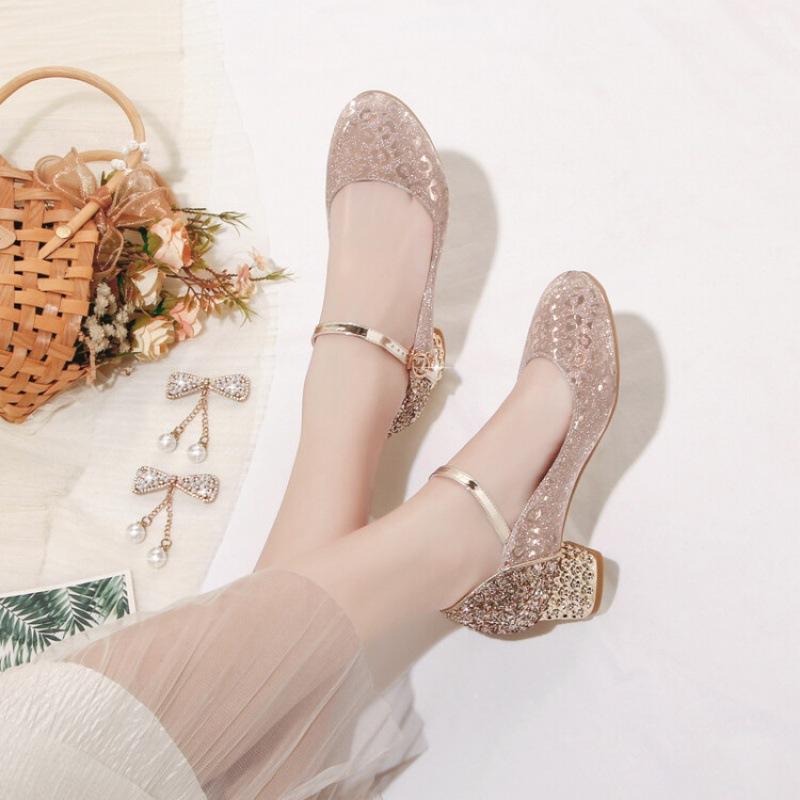 Summer children's sandals women's new student high-heeled princess shoes solid color rubber sole bag head medium and older children's girls' sandals