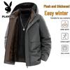 PLAYBOY Men's Thick Lamb Velvet Lined Hooded Jacket