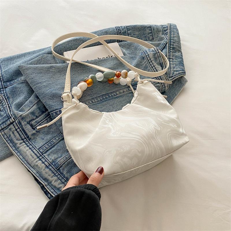 2025 new temperament fashion design single shoulder crossbody foreign style solid color retro fresh bead texture crossbody bag bag