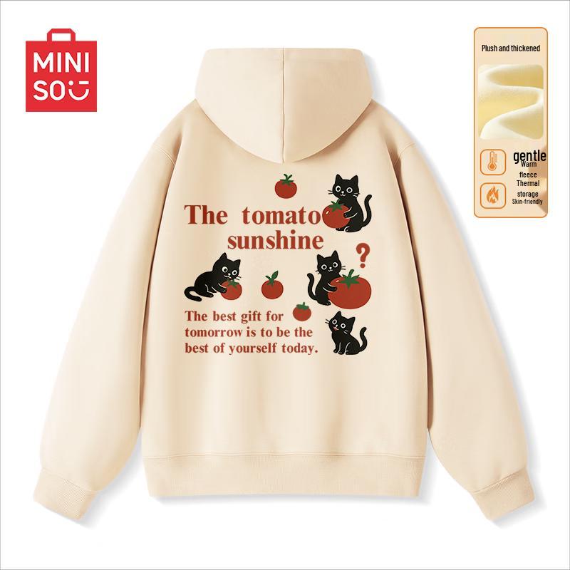 MINISO Men's Winter Plush Loose Hooded Pullover Sweatshirt