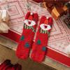 Herbst- und Winter-Weihnachtssocken für Damen: Nicht fusselnde Korallenfleece-Socken, Verdickte warme Cartoon-Halbfleece-Mittelwaden-Socken, Bodensocken
