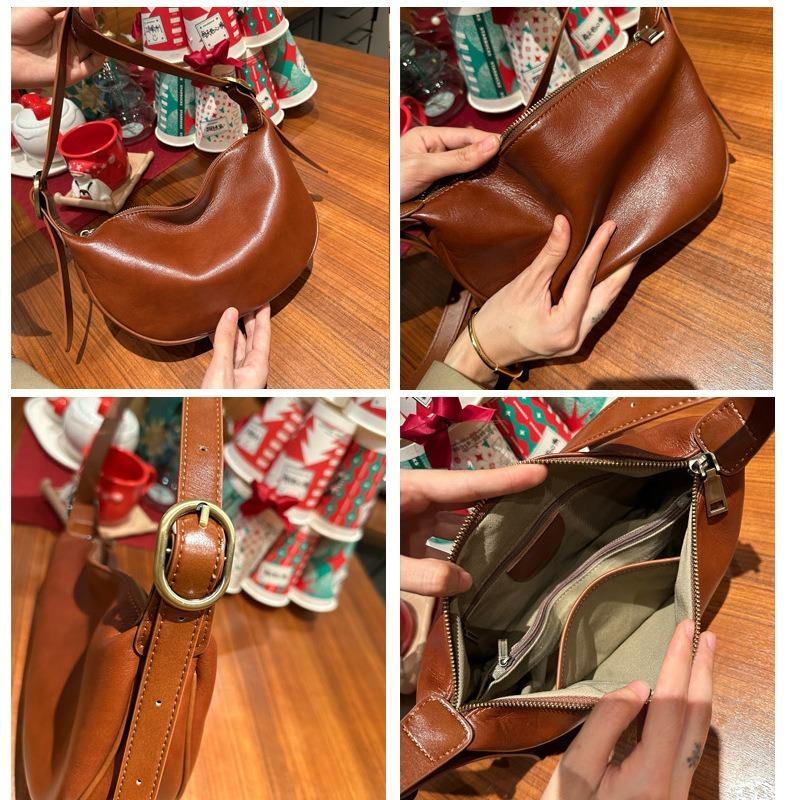 Messenger Bag aus Rindsleder der ersten Schicht, neue Damentasche, Retro-Pendler-Umhängetasche, große Kapazität, vielseitige Knödeltasche