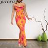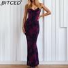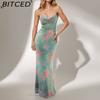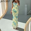 BITCED Spring Women's Fashion: Sensual Printed Strappy Waist-cinching Bodycon Maxi Halter Neck Dress