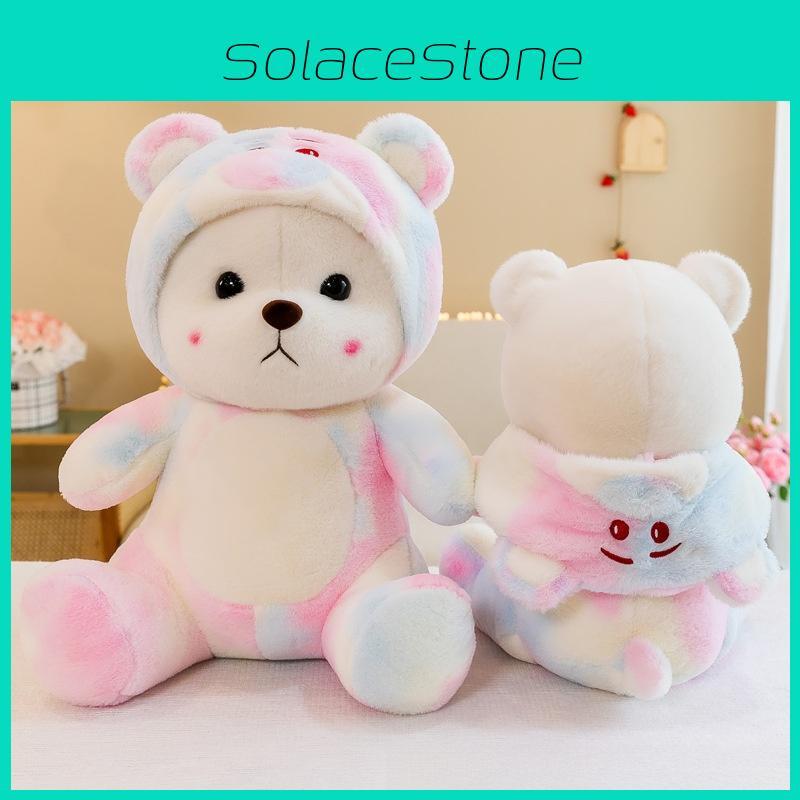 Cute Tie Dye Colored Teddy Bear Plush Toy Pillow For Childrens Bedroom And Gift