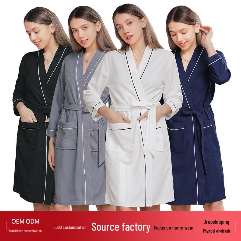 Erleben Sie Luxus und Komfort mit unserem Unisex-Waffelbademantel, der für den Frühling und Herbst konzipiert ist.. Dieser Bademantel aus hochwertigem Polyester bietet ein weiches und kuscheliges Gefühl.. Seine einzigartige Waffelstruktur verbessert die Atmungsaktivität und sorgt gleichzeitig für ein anspruchsvolles Erscheinungsbild.. Ideal für Hotels und Salons, der Bademantel bietet die Möglichkeit für ein anpassbares Logo, sodass Unternehmen ihren Gästen eine persönliche Note verleiihen können.. Dieser Bademantel ist perfekt, um das Entspannungserlebnis zu steigern, und vereint Praktikabilität mit Stil.