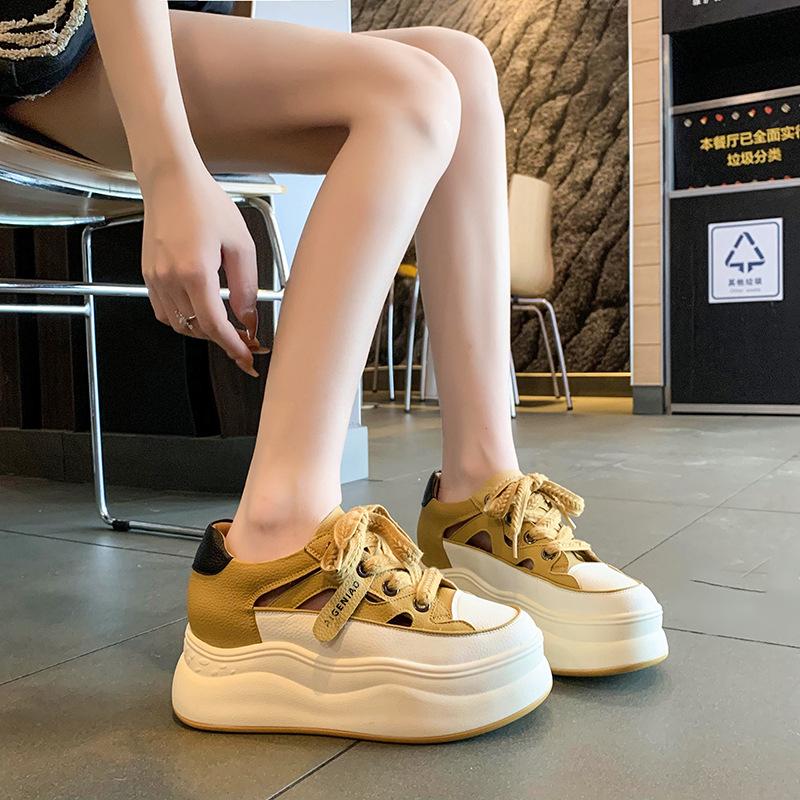 Mode Schuhe mit hohlen Löchern Damen 2025 Sommer neu dicksohlige atmungsaktive hohle kleine weiße Schuhe innere Höhenerhöhung dicksohlige Löcher