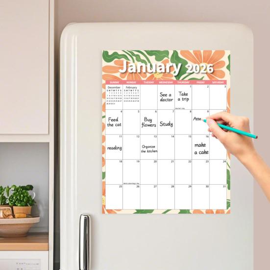12-Monats-Wandkalender 2026: Behalten Sie das ganze Jahr mühelos im Blick. Vielseitige Größe passt auf Tische, Wände, Kühlschränke oder in Küchen. Ideal für verschiedene Bedürfnisse, um sicherzustellen, dass Sie das ganze Jahr über den Überblick über Ihre Pläne behalten.