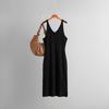 Sommer Dünnes Neckholder Kleid, V-Ausschnitt Ärmelloses Westenkleid, Saumschlitz Basis Strickkleid für Damen