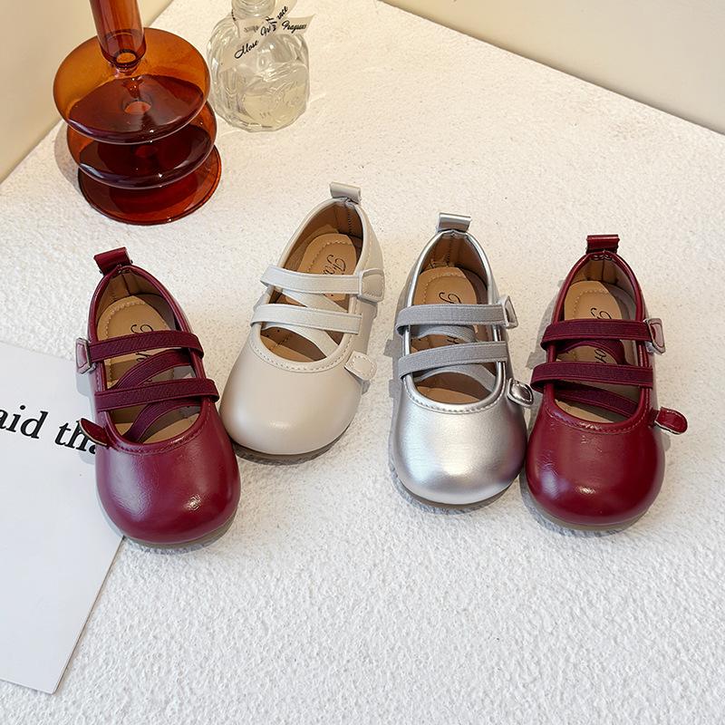 Korean version of students 2025 spring and autumn children's ballet style strap leather shoes soft sole girls foreign style Doudou shoes baby sin