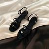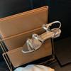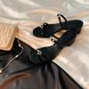 Lammfell-Version~ Französische Strass-Liebesschnalle Flachsohlige Sandalen für Damen Sommer vielseitig runde Spitze mit dicken Absätzen und coolen Pantoletten