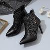 Außenhandel Übergröße Mesh Cool Boots Damen 2025 Sommer neu spitz paillettenbesetzt dünner Absatz hoher Absatz hohle Mesh-Stiefel