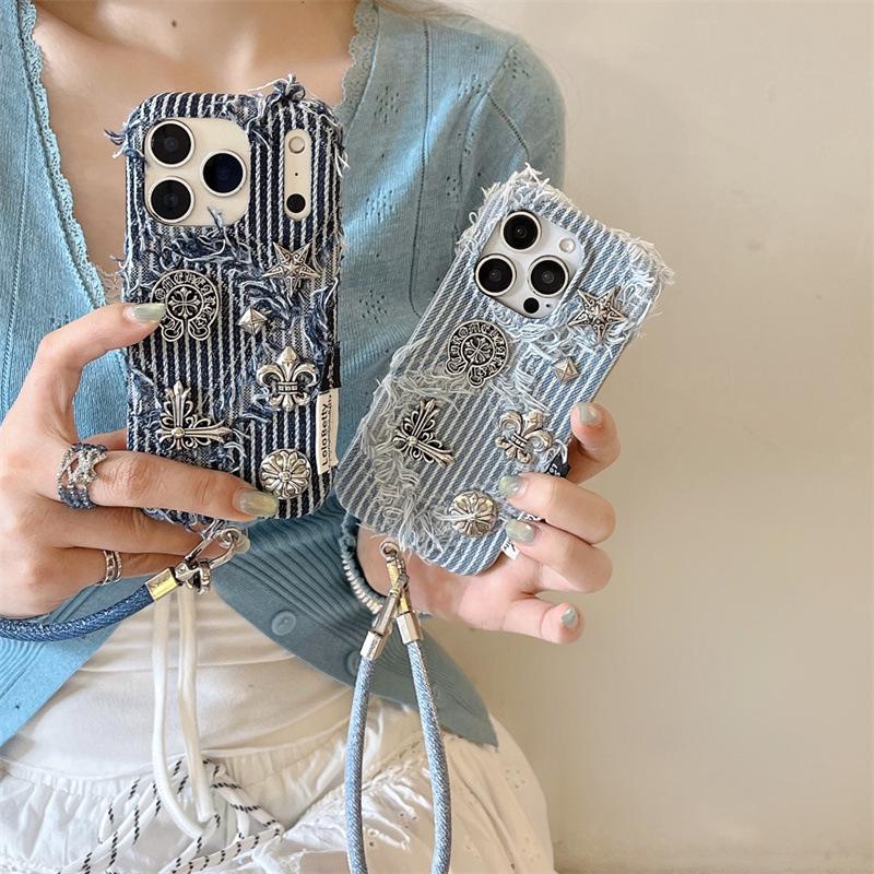 Punk Gestreifte Denim Hülle für iPhone 17/16 Pro Max/15/14 - Einzigartiger Stil