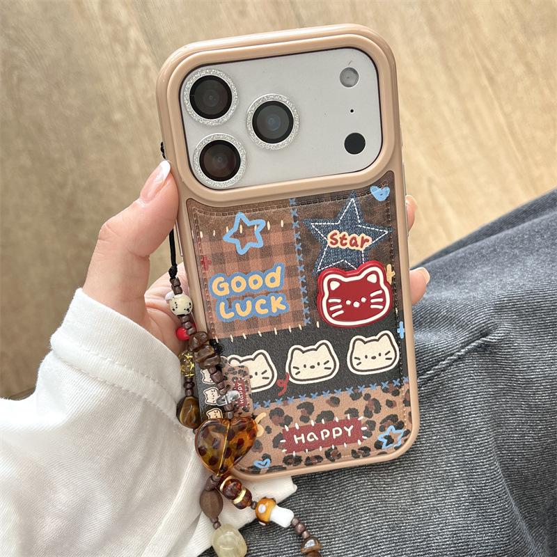 Braune Karo-Stern-Kätzchen-Handyhülle im japanischen & koreanischen Stil - Passend für iPhone17, 16ProMax/15/14