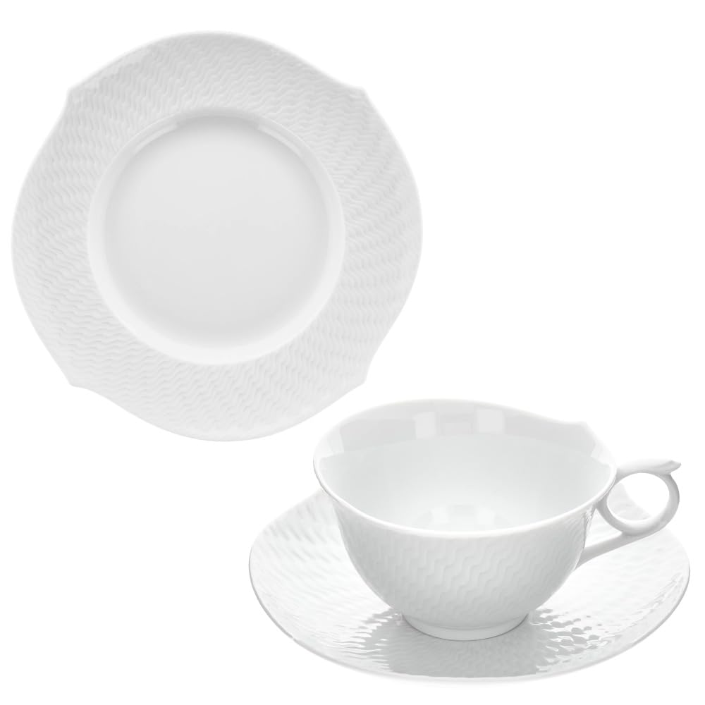 Meissen Wave Play White and Cake Plate Set Halloween Wedding or Commemorative Porcelain [Officially Imported] 3-Piece Teacup, Saucer,
