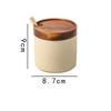Keramik-Gewürzdosen mit Bambusdeckel, Aufbewahrungsbox für Zucker, Salz und Gewürze, mit Löffel, Haushaltsbehälter, weiße Zuckerdose