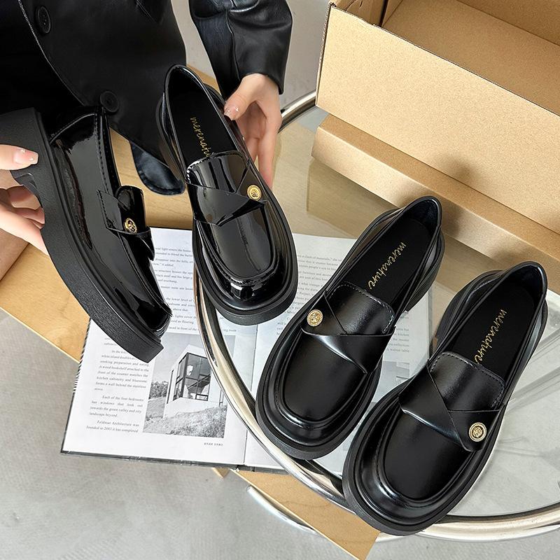 Slipper Damen 2025 Frühling und Herbst neue britische Stil schwarze kleine Lederschuhe Plateausohle ein Pedal Mary Jane Schuhe jk Einzelschuhe