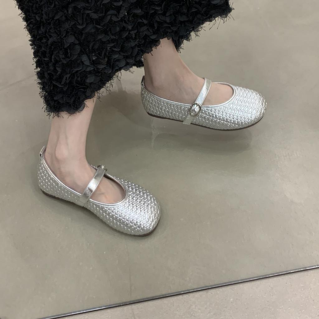 2025 Sommer neue Mary Jane Schuhe Damenschuhe tragen Ein-Wort-Schnalle mit weicher Sohle kleiner duftender Wind flacher Mund Einzelne Schuhe