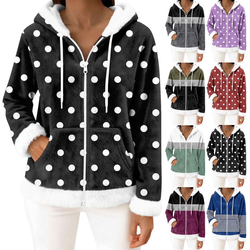 Damen Freizeitmode Langärmiger Fleece-Kapuzen-Cardigan mit Reißverschluss