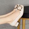 Echtleder Damen Schuhe Frühling Neu Weiches Leder Mittelhoch Absatz Eckige Zehenpartie Flache Öffnung Atmungsaktiv Weiche Sohle Modisch Vielseitig Damen Schuhe