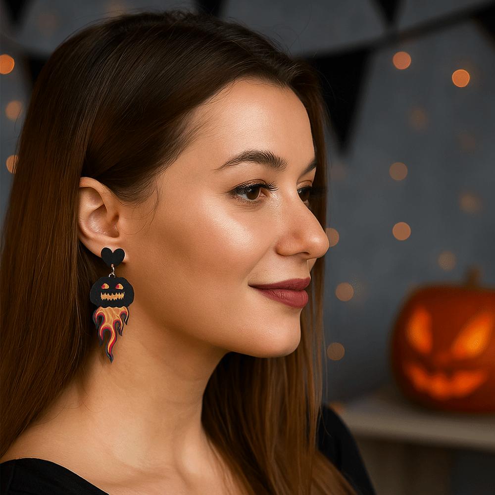 1 Pair Acrylic Halloween Earrings UFO Pumpkin Dangle Earrings Creative Cute Ghost Ear Studs Gift