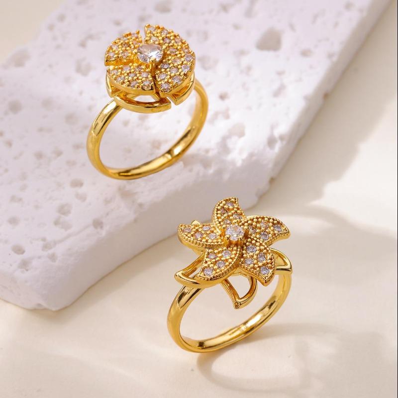 Mode Hunderte von personalisierten drehbaren vierblättrigen Kleeblatt-Ringen mit eingelegten Zirkonen, verstellbar, Schmuck