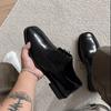 Herrenschuhe Schwarz Leder Quadratische Spitze Derby - Höhensteigernd, Dicke Sohle, Britischer Stil, Formell & Lässig für Business, Hochzeiten & Bräutigame.