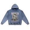 DTG print Knitted Denim Zip-Up Hoodie Money King Brother Print Zipper Hoodies