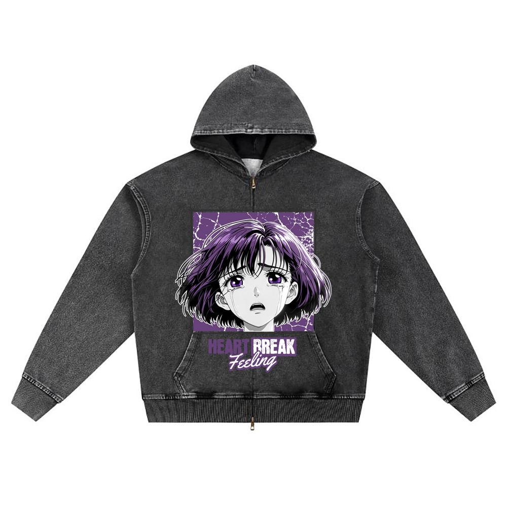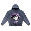 DTG-Druck Gestrickter Denim Zip-Up Hoodie Herzschmerzgefühl Bruder-Druck Reißverschluss-Hoodies