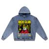 DTG print Knitted Denim Zip-Up Hoodie Rich Club Brother Print Zipper Hoodies