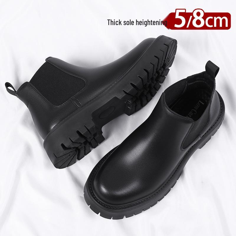Herren Chelsea Boots im britischen Stil: Dicksohlige, höhenerhöhende, Echtleder, Slipper, mittelhoher Schaft, Herbst/Winter Martin Boots.