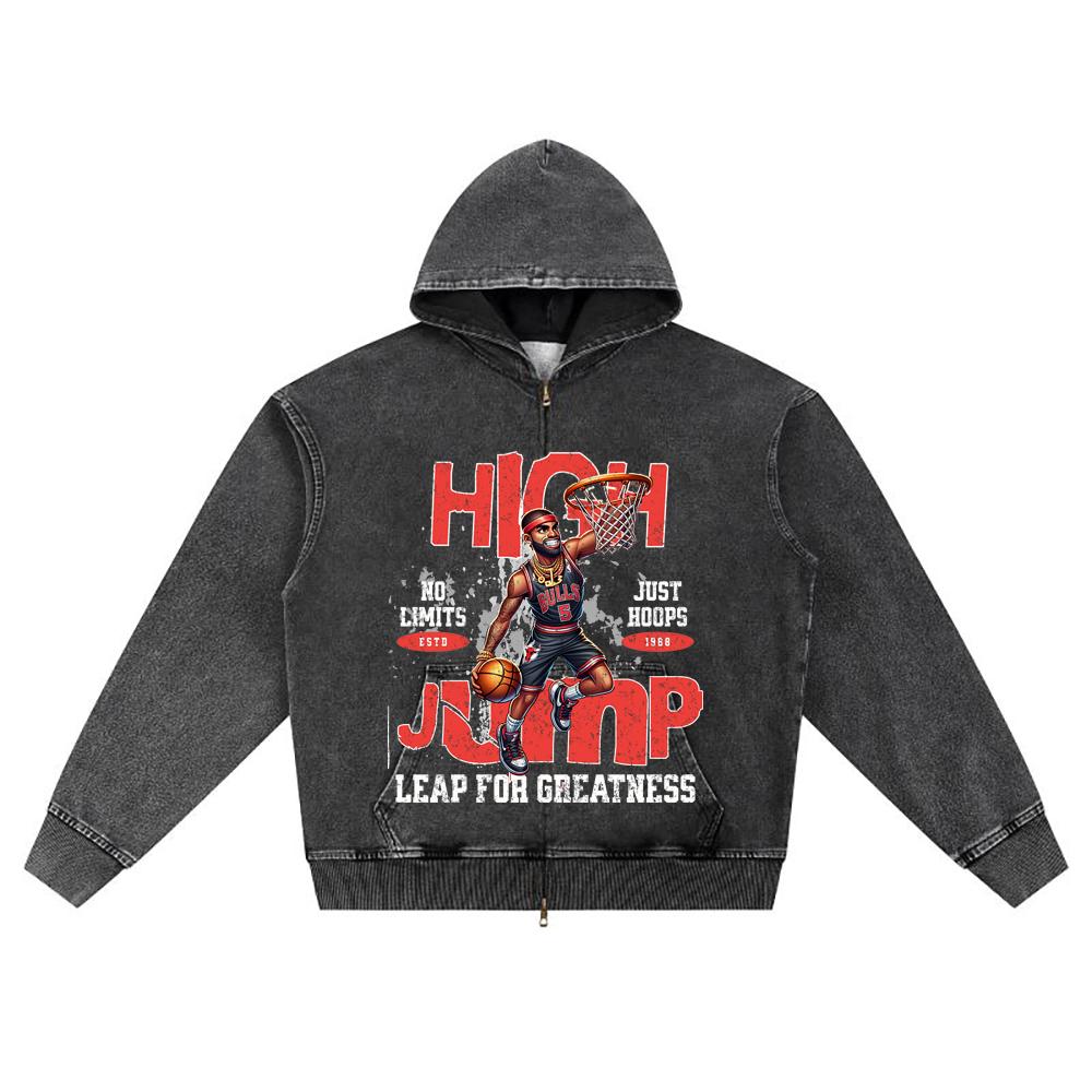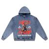 DTG-Druck Strick-Denim Zip-Up Hoodie High Jump Brother Druck Reißverschluss-Hoodies