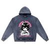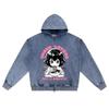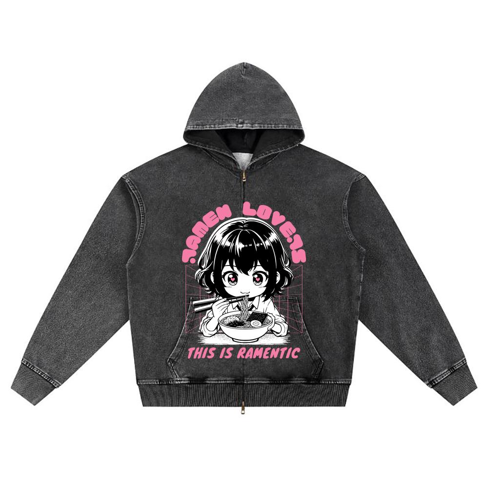 DTG-Druck Gestrickter Denim Zip-Up Hoodie Anime-Mädchen Ramen-Liebhaber Bruder-Druck Reißverschluss-Hoodies