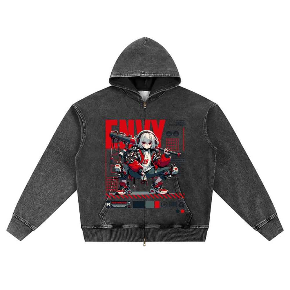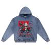 DTG-Druck Gestrickter Denim Zip-Up Hoodie Neid Anime Bruder Druck Reißverschluss-Hoodies