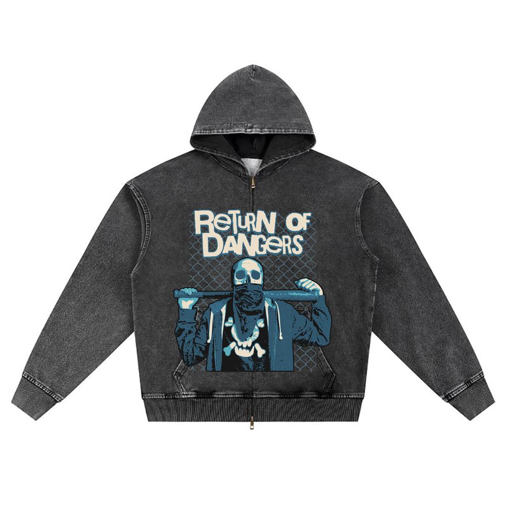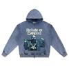 DTG print Knitted Denim Zip-Up Hoodie Return Of Dangers Brother Print Zipper Hoodies