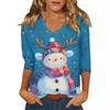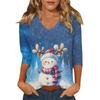 Damen Weihnachts-Print Modisch Lässig Siebenviertelärmel V-Ausschnitt Top