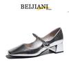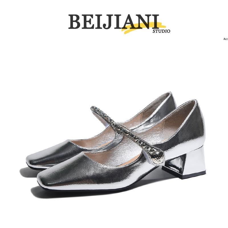 BEIJIANI Damen Silberne Klobige Absatz Mary Jane Schuhe - Weiches Leder, Vielseitiges Design, Eckige Zehenpartie