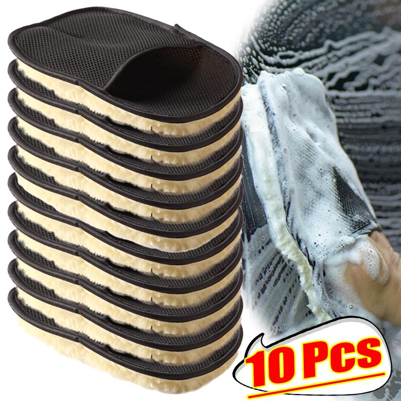 Imitierte Wolle Autoreinigungshandschuhe Ultra Saugfähige Mikrofaser Fäustlinge Kratzsicheres Waschpad für Fahrzeug Fahrrad Haushaltspflege Handschuhe 10 Stück