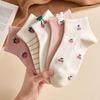 Women's Spring and Summer Fashion Simple Cloth Label Strawberry Embroidery Sweet Absorbing Breathable Cotton Socks