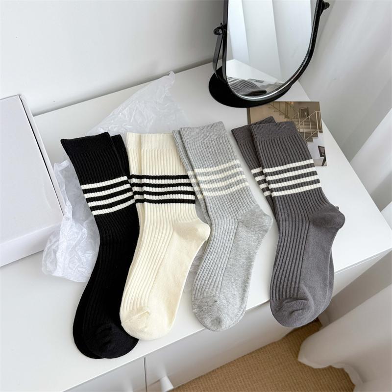 Damen Frühling und Herbst Retro Einfache Streifen in The Tube Stapelsocken