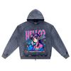 DTG-Druck Gestrickter Denim Zip-Up Hoodie Japan Samurai Bruder Druck Reißverschluss Hoodies