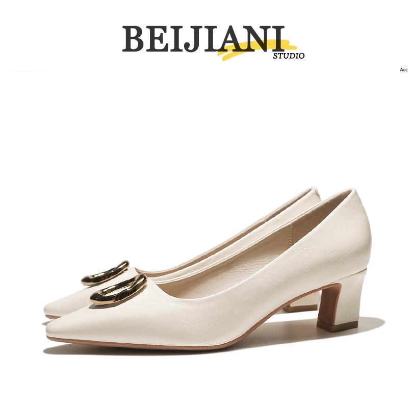 BEIJIANI Runde Schnalle Weiches Leder Blockabsatz Damen High Heels - Mittel Frühling/Herbst