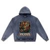 DTG print Knitted Denim Zip-Up Hoodie Vicious Rebel Wear Brother Print Zipper Hoodies