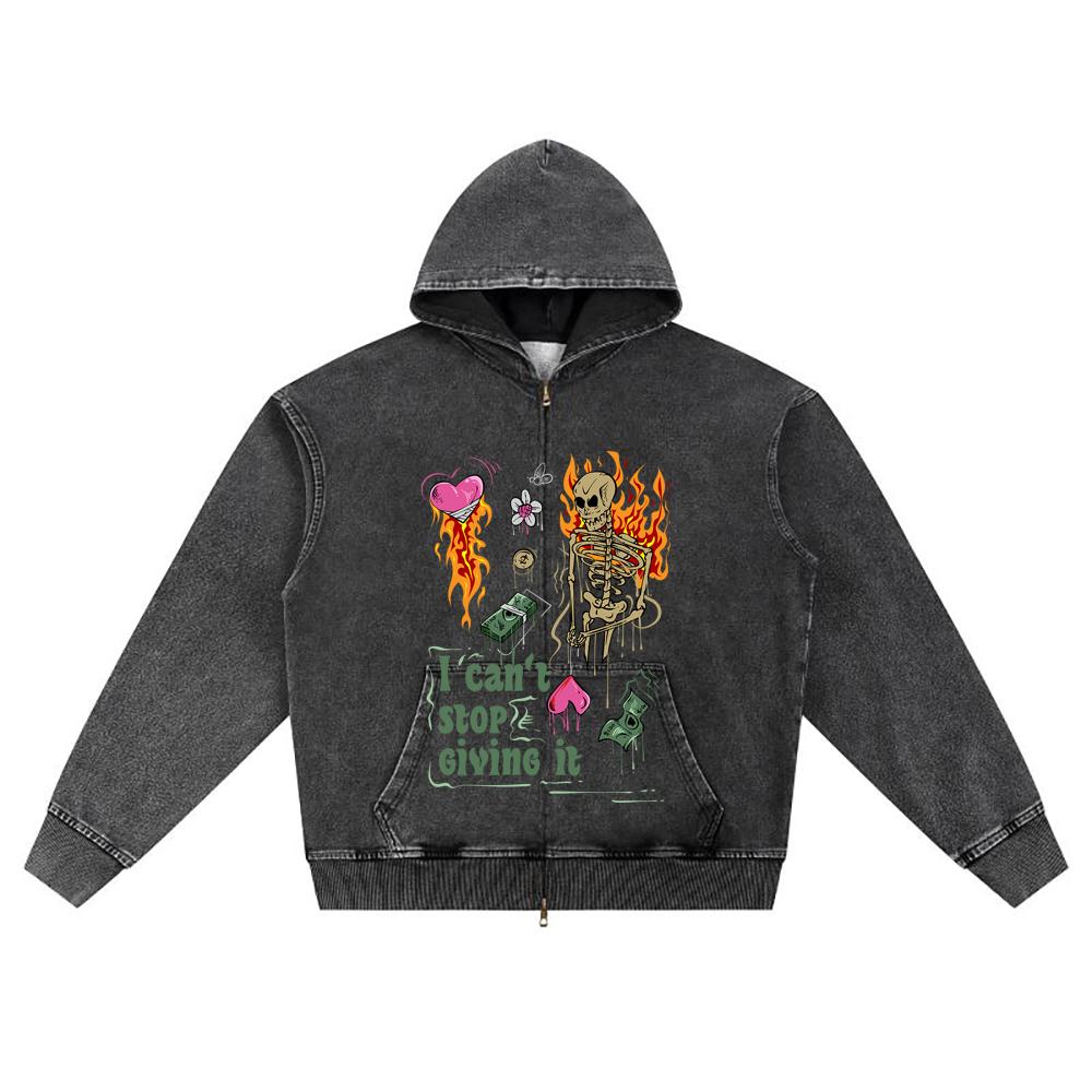 DTG print Knitted Denim Zip-Up Hoodie i can't stop giving it Brother Print Zipper Hoodies
