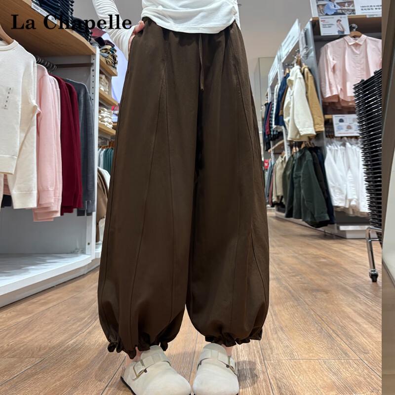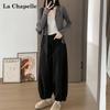 La Chapelle Women's High-Waist Wide-Leg Paperbag Cropped Pants