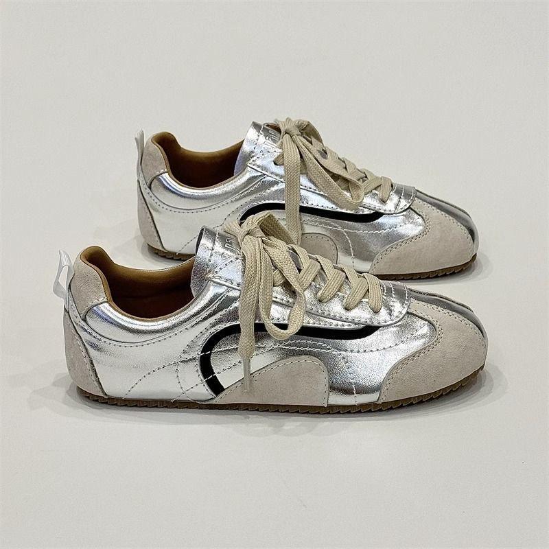 Die Retro Color-Block Flat Silver Damen-Sneaker sind die perfekte Mischung aus Stil und Komfort, speziell für Freizeitkleidung und Skateboarding entworfen.. Diese vielseitigen Schuhe verfügen über ein atmungsaktives Textilobermaterial, das ein leichtes Tragegefühl und eine verbesserte Luftzirkulation für ganztägigen Komfort gewährleistet.. Die strapazierfähige Gummisohle bietet hervorragenden Grip und Halt, ideal sowohl für Outdoor-Abenteuer als auch für Stadterkundungen.. Innen bietet die Mikrofaser-Innensohle eine weiche Haptik und hervorragende Dämpfung, die Ihre Füße den ganzen Tag über gemütlich und gestützt hält.. Ob beim Skaten, Spazieren oder einfach nur als modisches Statement, diese Sneaker bieten einen zeitlosen Retro-Stil mit moderner Funktionalität.