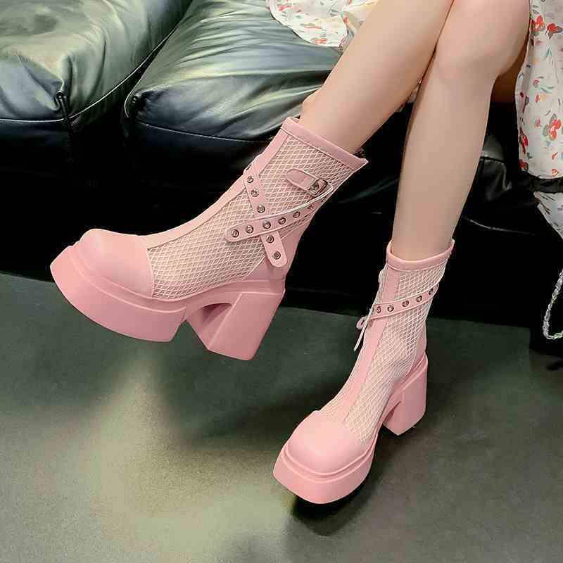 Damen Vielseitige Ausgeschnittene Mesh Martin Stiefel: Atmungsaktive Frühling/Sommer Knöchelriemen Sandalen 2025