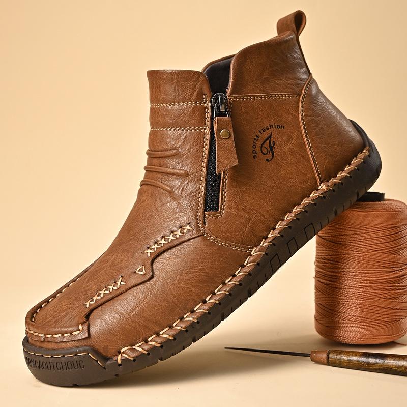 Erleben Sie Komfort und Stil mit diesen warmen Lederstiefeln im britischen Stil, perfekt für die Herbst- und Wintersaison.. Diese High-Top-Kurzstiefel wurden speziell für Männer entworfen und verfügen über ein plüschiges Samtfutter, das dafür sorgt, dass Ihre Füße bei kälterem Wetter warm bleiben.. Die strapazierfähige Gummisohle bietet hervorragende Traktion, während die Polyurethan-Innensohle erstklassigen Komfort und Halt für den ganzen Tag bietet.. Zusätzlich verbessert das Mesh-Futter die Atmungsaktivität, was diese Stiefel zu einer praktischen und dennoch modischen Wahl für jede Garderobe macht.. Erhältlich in Übergrößen, sind sie ideal für diejenigen, die eine Mischung aus Funktionalität und klassischer britischer Eleganz suchen.